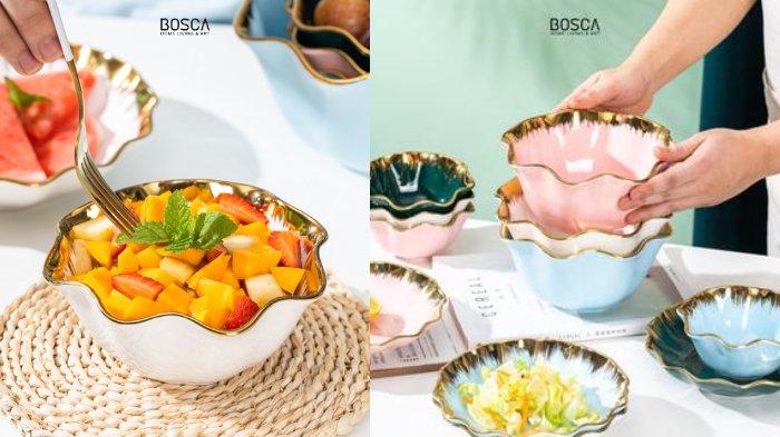 | BOSCA LIVING Dahlia Ceramic Bowl | Cocok untuk dessert dan buah, banyak pilihan warna, keramik berkualitas, didesain dengan aksen emas di pinggiran. | Rp 82.500 |