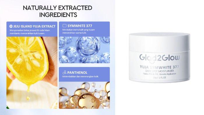 Untuk penjelasan lebih lengkapnya, kamu bisa cek bahan aktif atau ingredients list dari Glad2Glow Yuja Symwhite 377 Dark Spot Moisturizer.