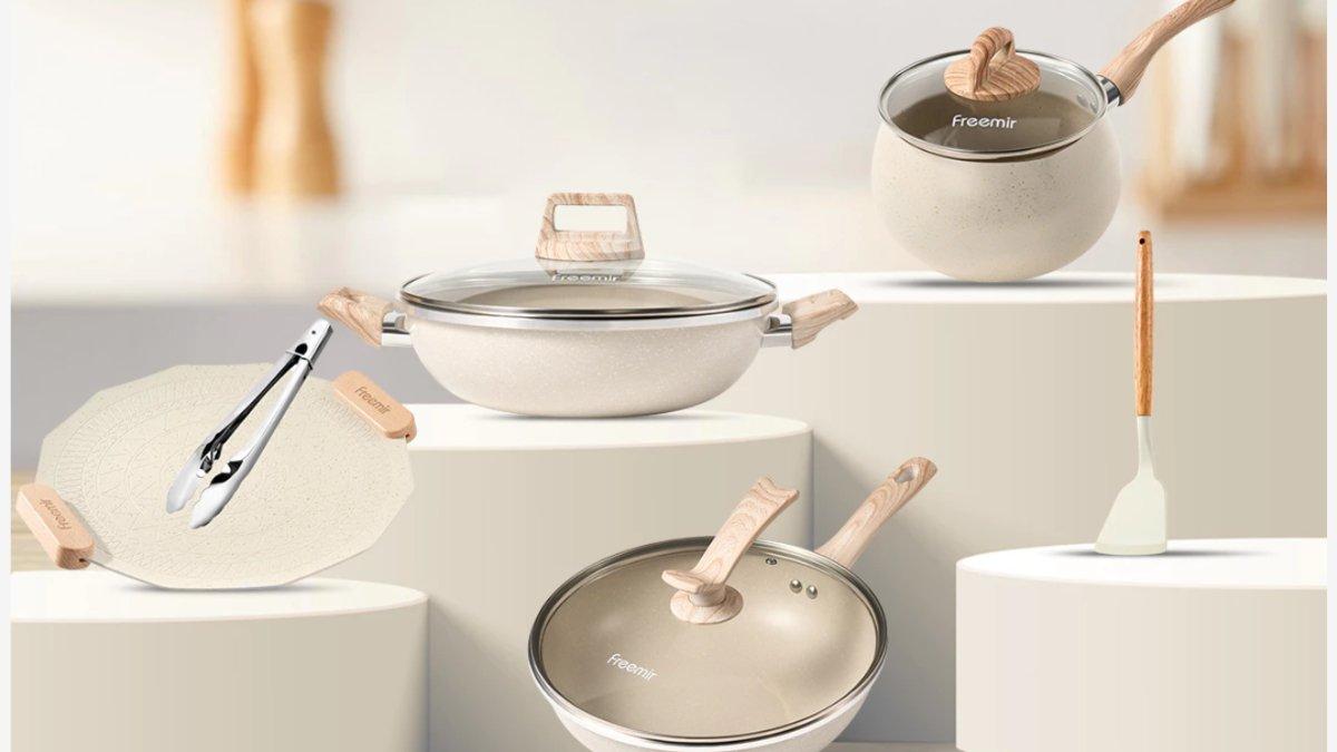 4. freemir Set 7 Pcs Wajan Panci Beige/Hitam 26/20/20/16 dengan Tutup