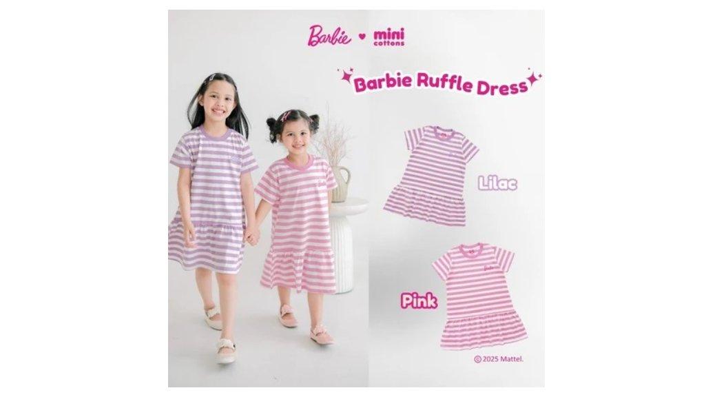 35. Barbie x Minicottons Stripe Ruffle Dress Salur Baju Anak Perempuan 3-10 Tahun: Rp89.900