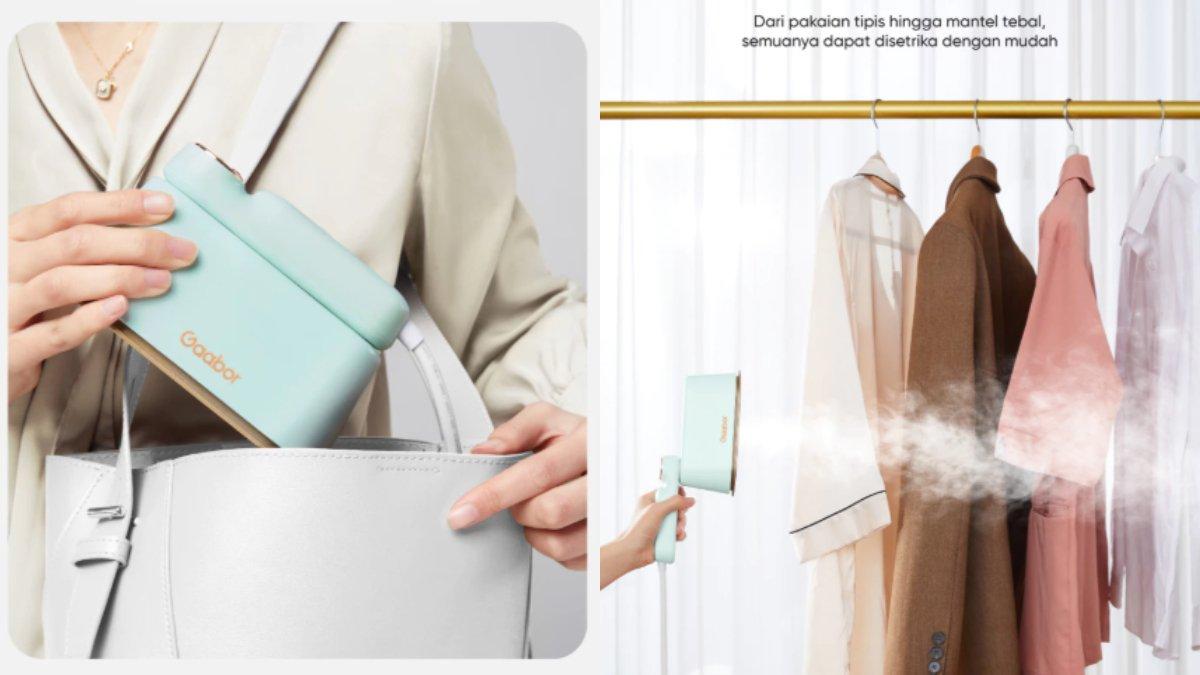 Gaabor Setrika Uap 2in1 HM-M01A yang serbaguna, ringkas dan mudah dilipat membuat produk praktis untuk merapikan pakaian di mana saja.