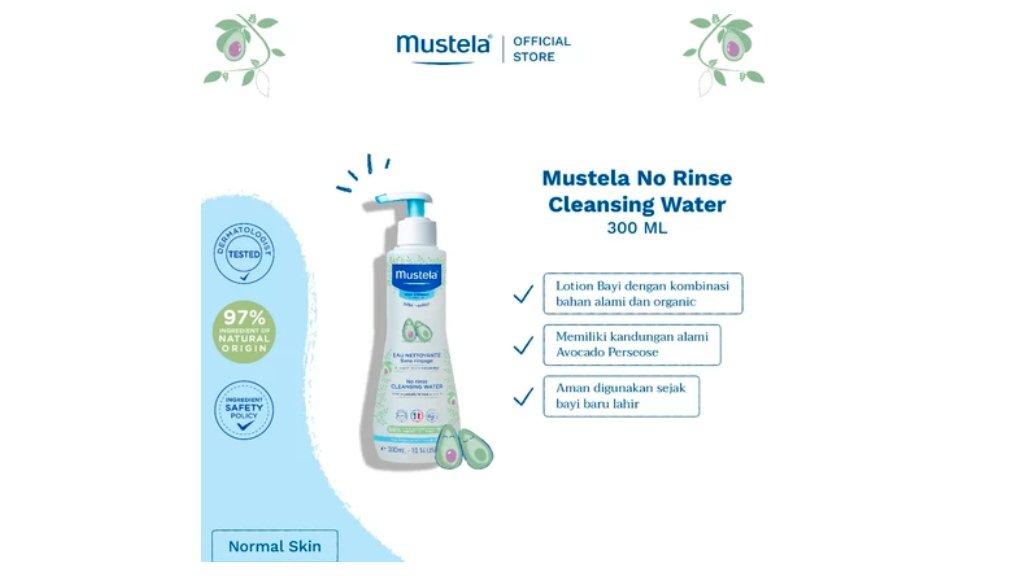 Membersihkan tubuh bayi dan megganti diapers tak lagi repot dengan Mustela No Rinse Cleansing Water, micellar water bayi dengan formula alami.