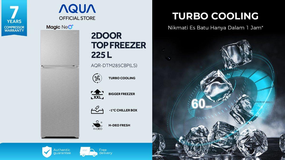 AQUA AQR-DTM285CBP Kulkas 2 Door 225L menghadirkan kemudahan dalam menyimpan aneka bahan makanan didukung dengan beragam fitur di dalamnya.